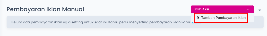 1. Masuk pada submenu Pembayaran Iklan Manual pada menu Integrasi